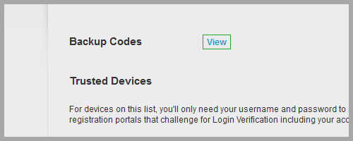 3. Click on „View“ backup codes