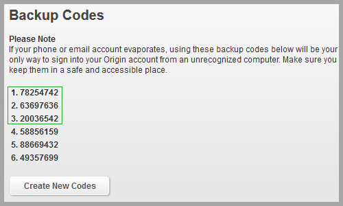 4. Copy the backup codes 1,2 and 3 into the fields while placing your order. If you have already used one of them, you can also create new codes with the corresponding button.